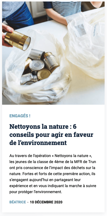 Faites le plein d’optimisme et de bonnes idées en jetant un œil sur les initiatives, les actions et les événements qui ont un impact positif sur notre quotidien. Développement durable, préservation de l’environnement, création de bien-être, défense de l’égalité femmes-hommes, conseils pour agir de manière plus responsable et solidaire… Tout est là !